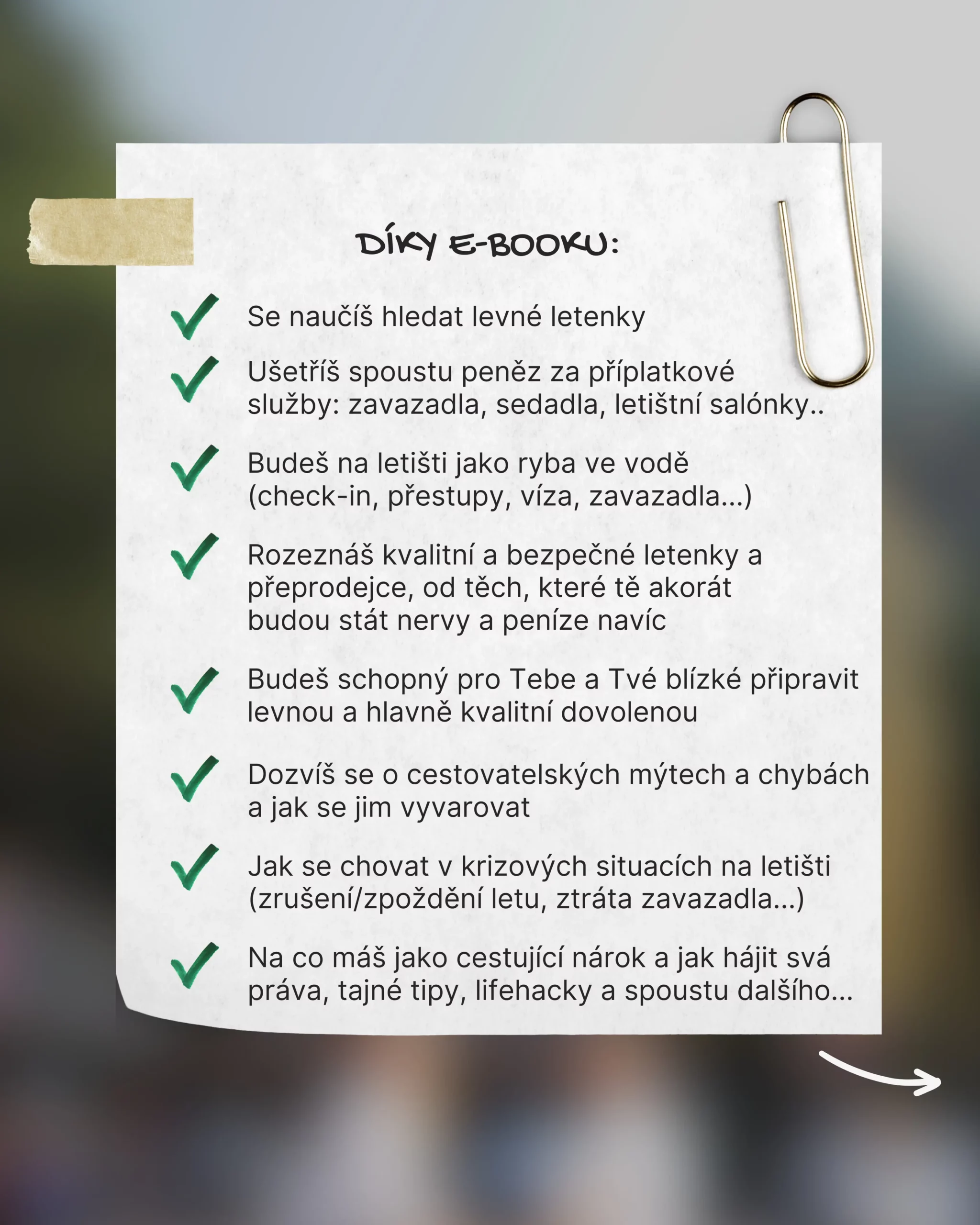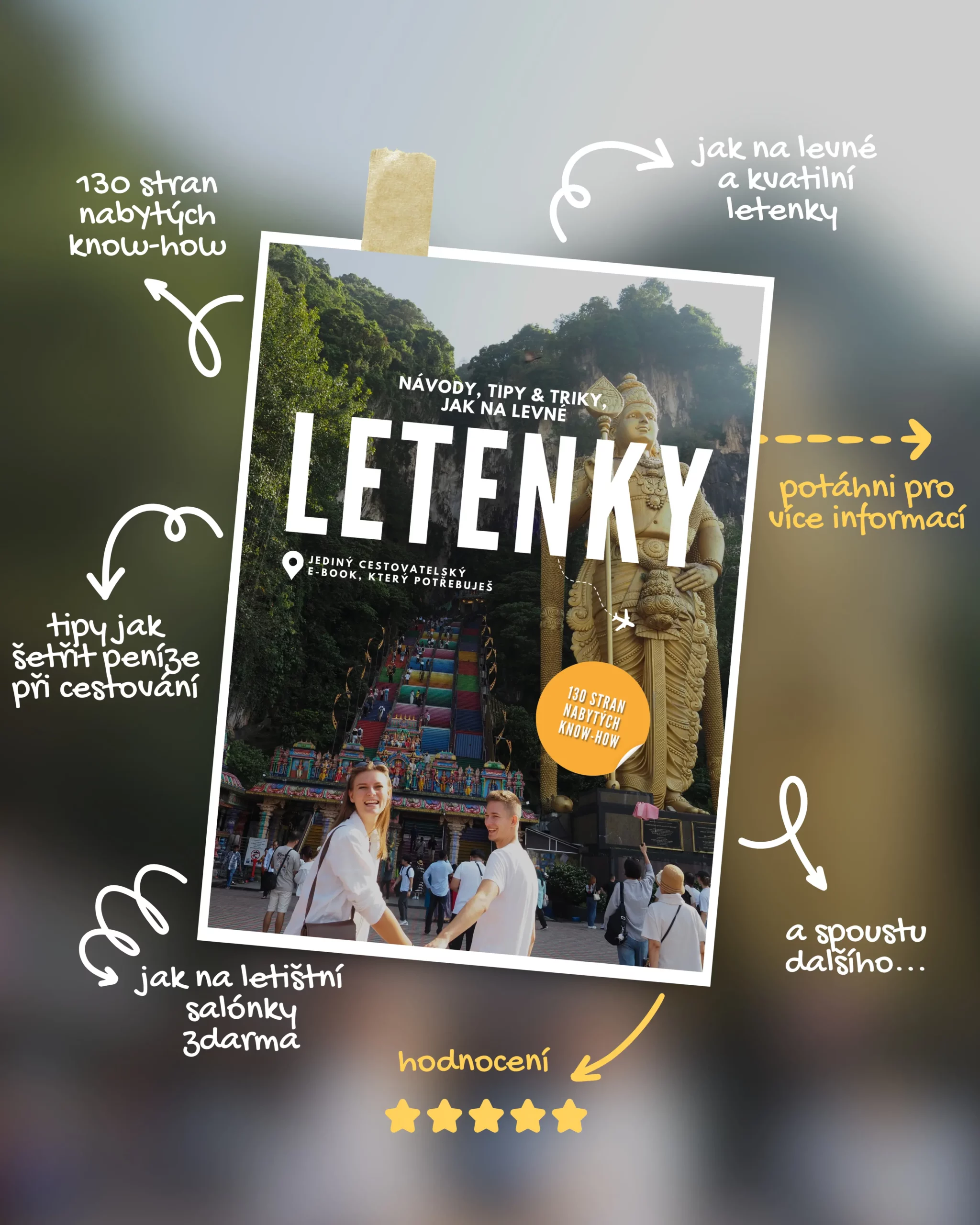 Náš 130 stránkový e-book tě provede světem levného a kvalitního létání od A až do Z. Vložili jsme do něj veškeré našeho znalosti ohledně hledání a nákupu letenek, které ti hned na první dovolené ušetří spoustu peněz!